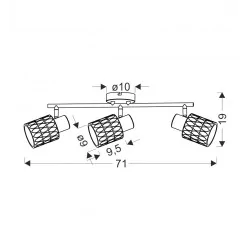 Materiał wykonania: podstawa stalowa, klosz szklany. Kolor podstawy: czarny. Wysokość: 19. Szerokość: 71. Głębokość: 9. Wymiary (wys. x szer. x gł.): 19x71x9. Waga netto: 1,90. Rodzaj trzonka: E27.