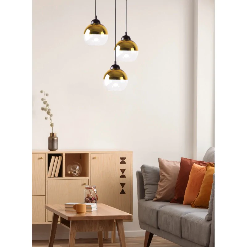 CONTESSA LAMPA WISZĄCA TALERZ CZARNY 3X40 E27 KLOSZ ZŁOTY Candellux