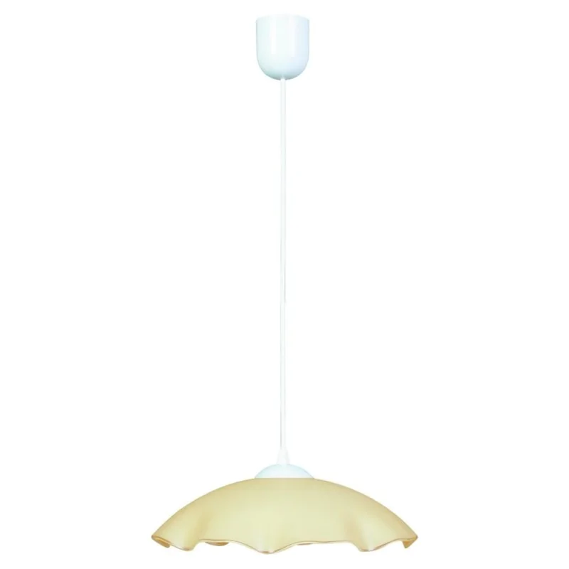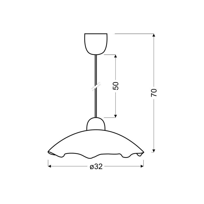 Materiał wykonania: zawiesie stalowe, klosz szklany. Kolor podstawy: beżowy. Wysokość: 70. Szerokość: 32. Głębokość: 32. Wymiary (wys. x szer. x gł.): 70x32x32. Waga netto: 1,25. Barwa światła: neutralna. Rodzaj trzonka: E27.