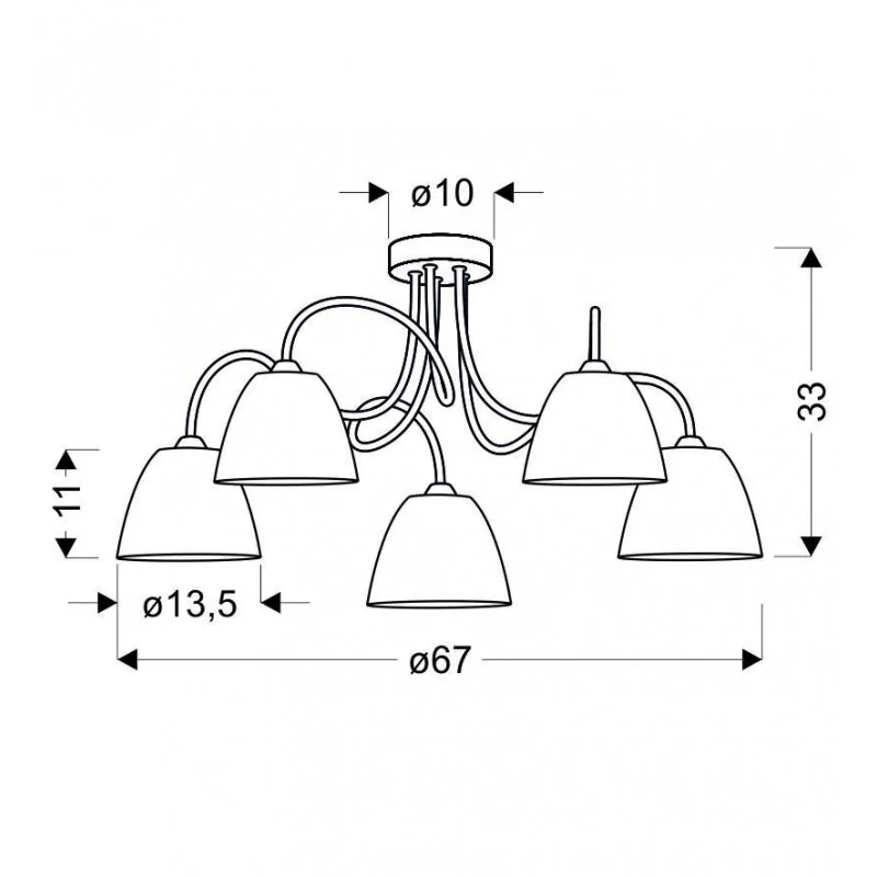 Materiał wykonania: podstawa stalowa, klosz szklany. Kolor podstawy: chromowy. Wysokość: 33. Szerokość: 67. Głębokość: 67. Wymiary (wys. x szer. x gł.): 33x67x67. Waga netto: 2,30. Rodzaj trzonka: E14.