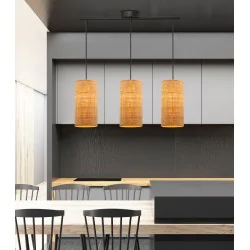 Materiał wykonania: zawiesie stalowe, abażur tkanina/PCV+ratan. Kolor podstawy: czarny, beżowy ratan. Wysokość: 125. Szerokość: 54. Głębokość: 12. Wymiary (wys. x szer. x gł.): 125x54x12. Waga netto: 0,97. Rodzaj trzonka: E27.