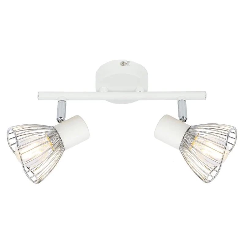 Materiał wykonania: klosz-koszyczek metalowy, podstawa metalowa. Kolor podstawy: biały + chromowy. Wysokość: 15. Szerokość: 39. Głębokość: 8. Wymiary (wys. x szer. x gł.): 15x39x8. Waga netto: 0,51. Rodzaj trzonka: E14.