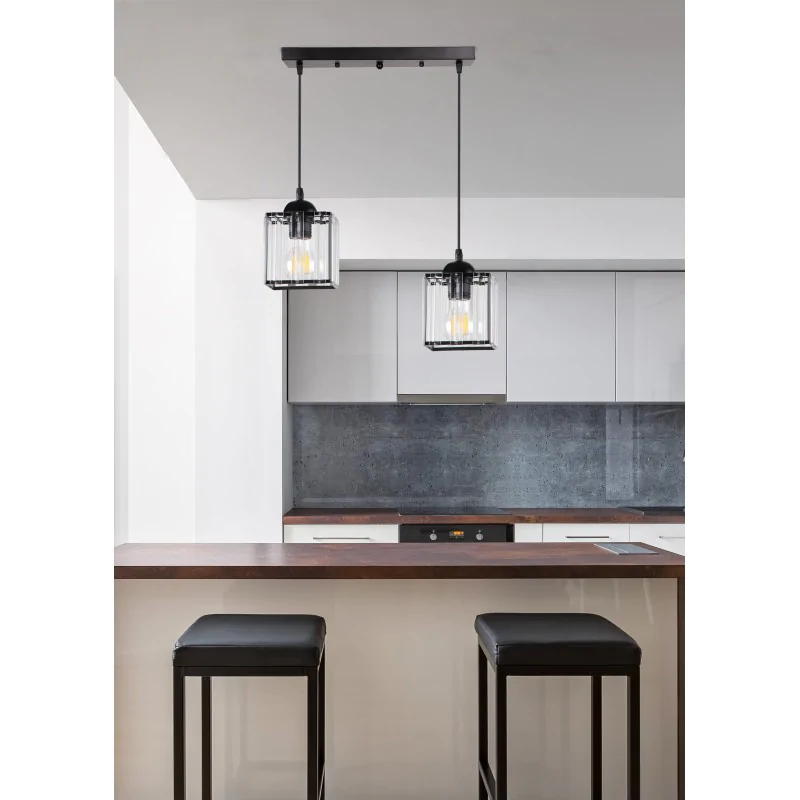 GLASSIA LAMPA WISZĄCA CZARNY 2X40 E27 KLOSZ CZARNY+KRYSZTAŁY BEZBARWNE Candellux