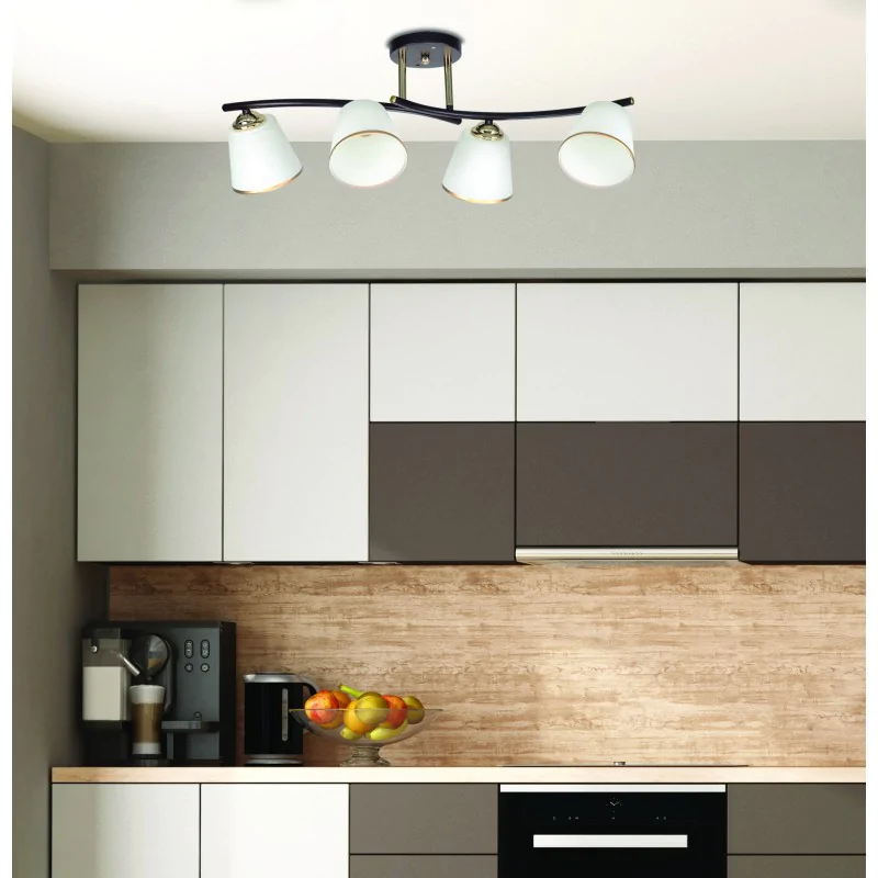 GRECO LAMPA SUFITOWA CZARNY+ZŁOTY 4X40 E27 KLOSZ BIAŁY Candellux