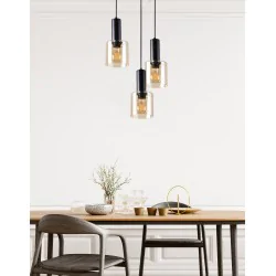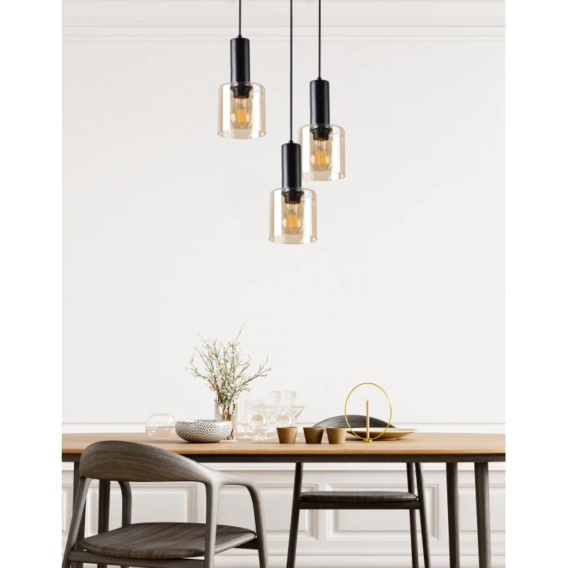 ISAR LAMPA WISZĄCA TALERZ CZARNY 3X40 E27 KLOSZ BURSZTYNOWY Candellux