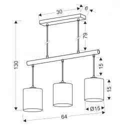 Materiał wykonania: zawiesie stalowe, abażur tkanina/PCV. Kolor podstawy: biały, abażur beżowy. Wysokość: 130. Szerokość: 64. Głębokość: 15. Wymiary (wys. x szer. x gł.): 130x64x15. Waga netto: 1,39. Rodzaj trzonka: E27.