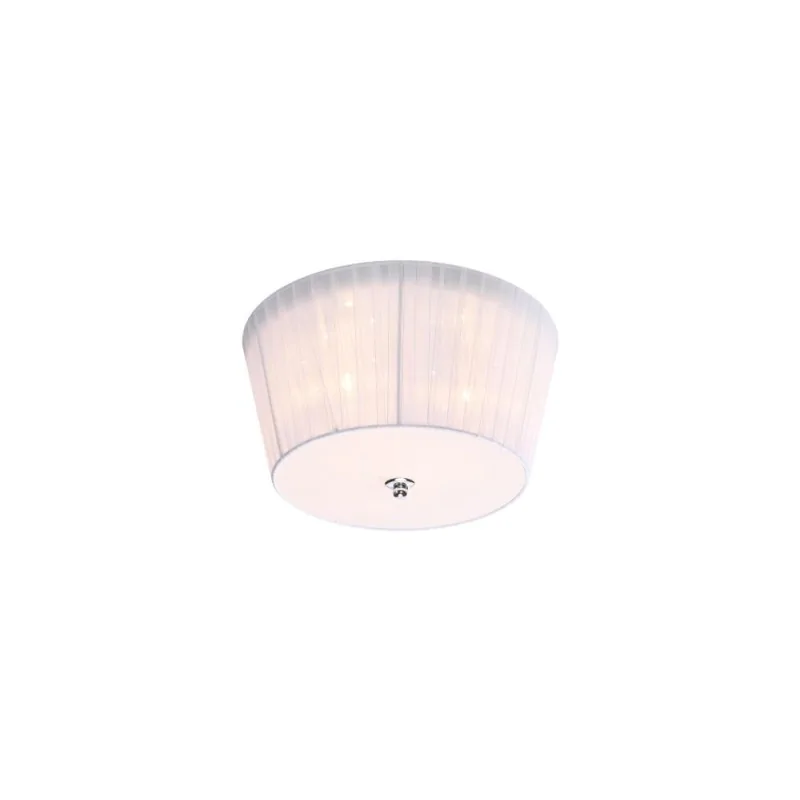 Materiał wykonania: podstawa stalowa, abażur z organzy. Kolor podstawy: biały. Wysokość: 20,5. Szerokość: 34,5. Głębokość: 34,5. Wymiary (wys. x szer. x gł.): 20,5x34,5x34,5. Waga netto: 2,00. Barwa światła: zimna. Rodzaj trzonka: G9.