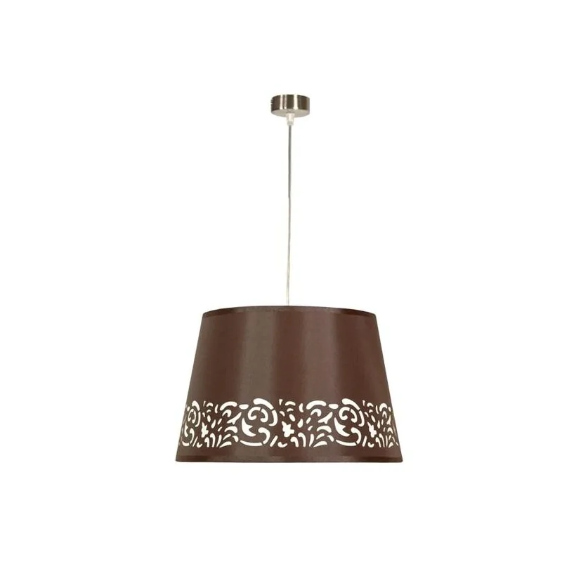 Materiał wykonania: zawiesie stalowe, abażur tkanina/PCV. Kolor podstawy: brązowy. Wysokość: 100. Szerokość: 35. Głębokość: 35. Wymiary (wys. x szer. x gł.): 100x35x35. Waga netto: 0,47. Rodzaj trzonka: E27.