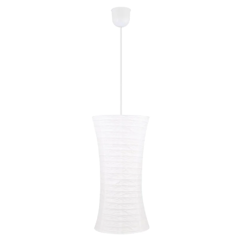 Materiał wykonania: abażur papierowy, zawiesie plastikowe. Kolor podstawy: biały. Wysokość: 100. Szerokość: 30. Głębokość: 30. Wymiary (wys. x szer. x gł.): 100x30x30. Waga netto: 0,40. Rodzaj trzonka: E27.