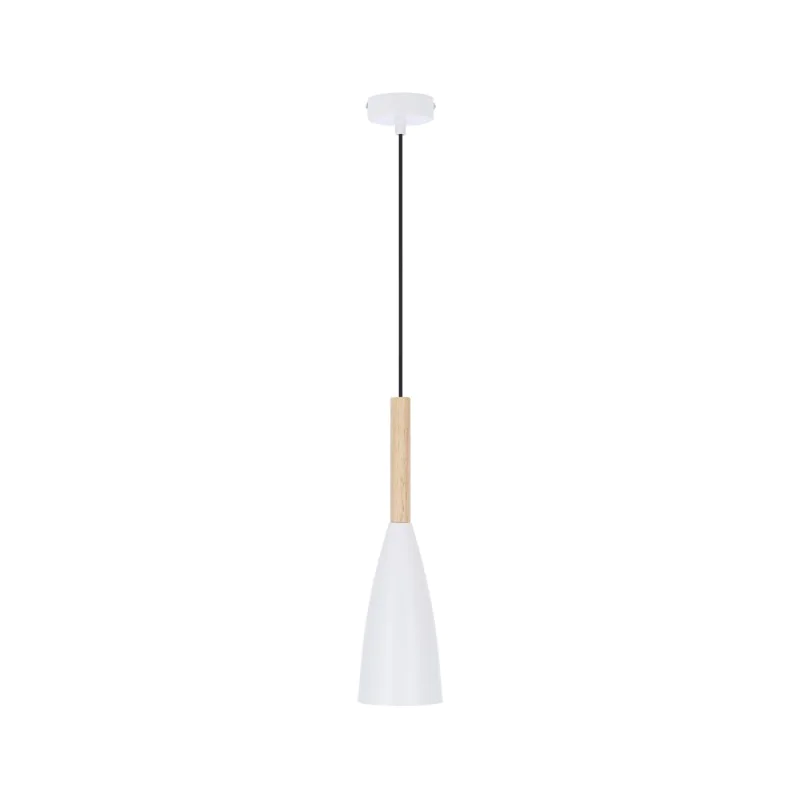 Materiał wykonania: metal, drewno. Kolor podstawy: biały. Wysokość: 90. Szerokość: 10. Głębokość: 10. Wymiary (wys. x szer. x gł.): 90x10x10. Waga netto: 1,00. Rodzaj trzonka: E27.