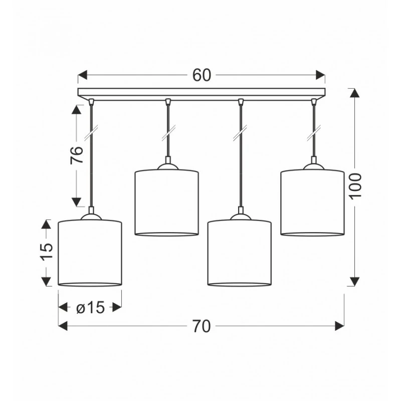 Materiał wykonania: zawiesie stalowe, abażur tkanina/PCV+ratan. Kolor podstawy: czarny + orzechowy. Wysokość: 100. Szerokość: 70. Głębokość: 15. Wymiary (wys. x szer. x gł.): 100x70x15. Waga netto: 1,20. Rodzaj trzonka: E27.