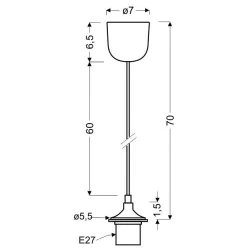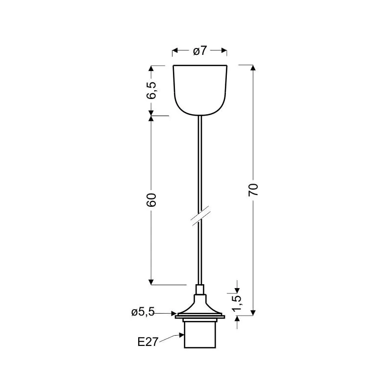 Materiał wykonania: plastik, przewód elektryczny, oprawka plastikowa. Kolor podstawy: biały. Wysokość: 70. Szerokość: 7. Głębokość: 7. Wymiary (wys. x szer. x gł.): 70x7x7. Waga netto: 0,10. Rodzaj trzonka: E27.