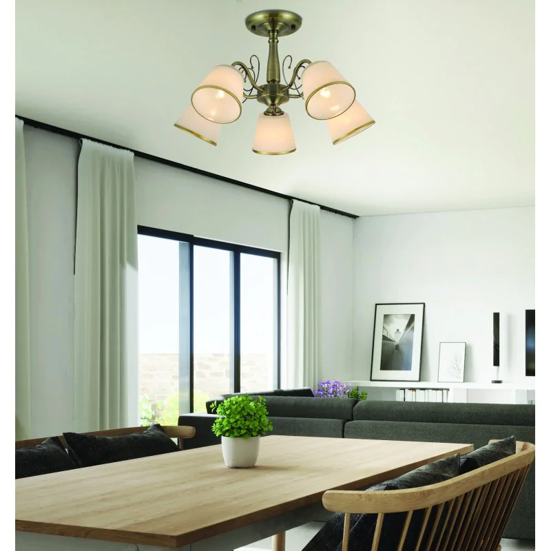 LOSANNA LAMPA WISZĄCA PATYNOWY 5X40W E14 KLOSZ BIAŁY Z OBWÓDKĄ Candellux