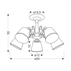 Materiał wykonania: podstawa stalowa, klosz szklany. Kolor podstawy: patynowy. Wysokość: 30. Szerokość: 54. Głębokość: 54. Wymiary (wys. x szer. x gł.): 30x54x54. Waga netto: 2,30. Rodzaj trzonka: E27.