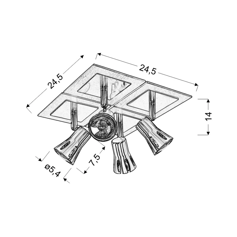 Materiał wykonania: klosza metalowy, podstawa metalowa/drewno. Kolor podstawy: chromowy / drewno. Wysokość: 14. Szerokość: 24,5. Głębokość: 24,5. Wymiary (wys. x szer. x gł.): 14x24,5x24,5. Waga netto: 1,50. Rodzaj trzonka: E27.