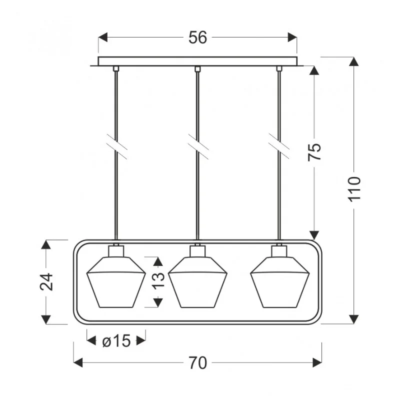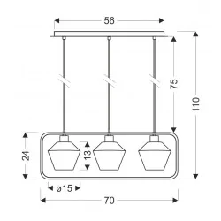 Materiał wykonania: zawiesie stalowe, klosz szklany. Wysokość: 110. Szerokość: 70. Głębokość: 15. Wymiary (wys. x szer. x gł.): 110x70x15. Waga netto: 2,30. Rodzaj trzonka: E27.