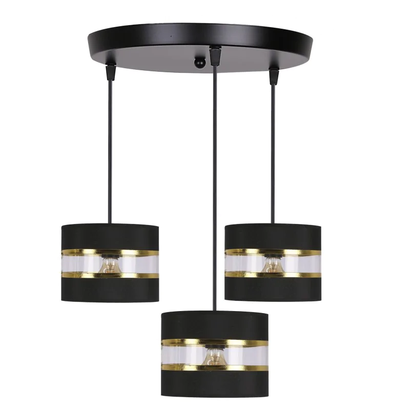 PANDY lampa wisząca czarny talerz 3x40W E27 abażur czarny+złoty Candellux