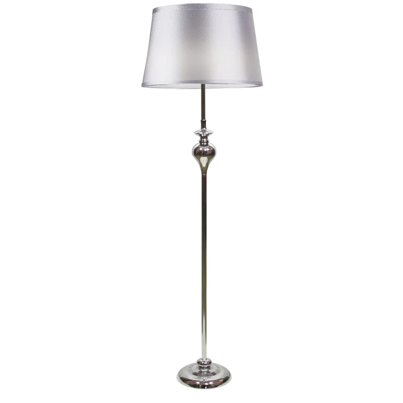 PRIMA LAMPA PODŁOGOWA CHROMOWY 1X60 E27 ABAŻUR SREBRNY Candellux