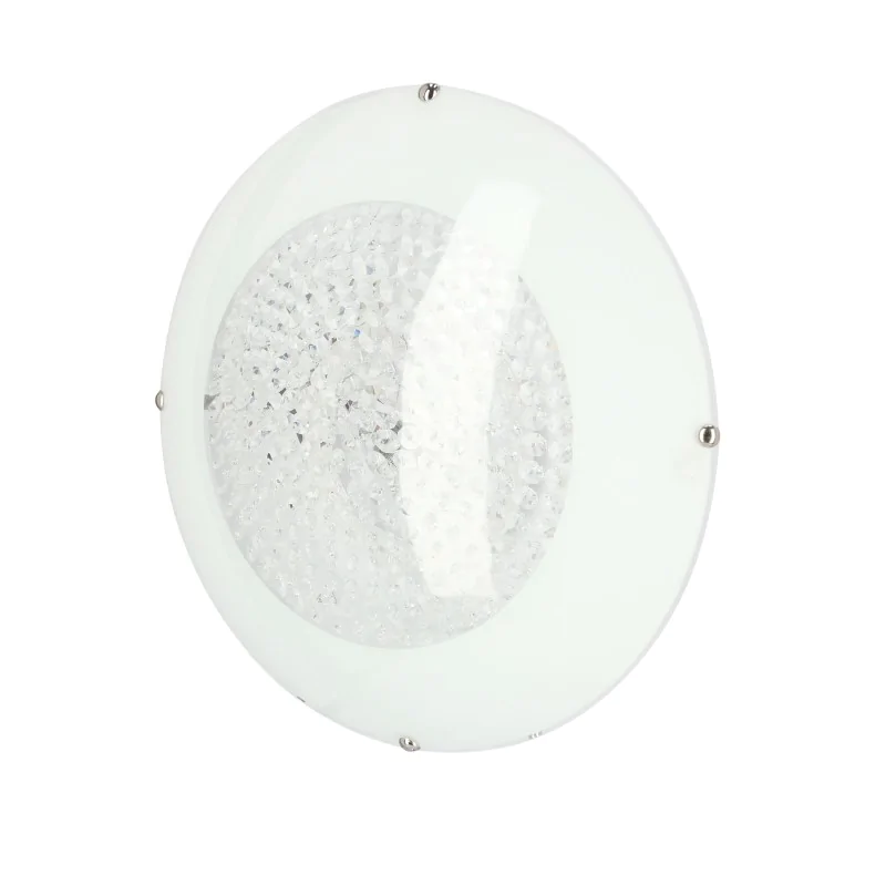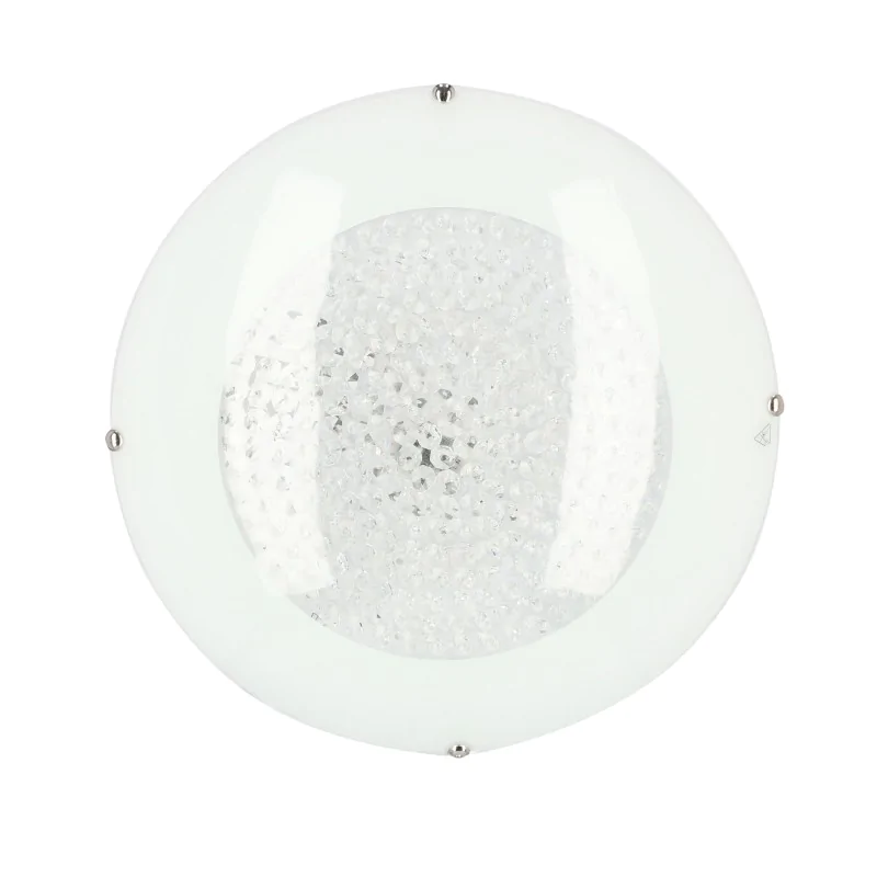 Materiał wykonania: podstawa stalowa, klosz szklany. Kolor podstawy: biały, szkło. Wysokość: 10. Szerokość: 40. Głębokość: 40. Wymiary (wys. x szer. x gł.): 10x40x40. Waga netto: 1,80. Barwa światła: neutralna.