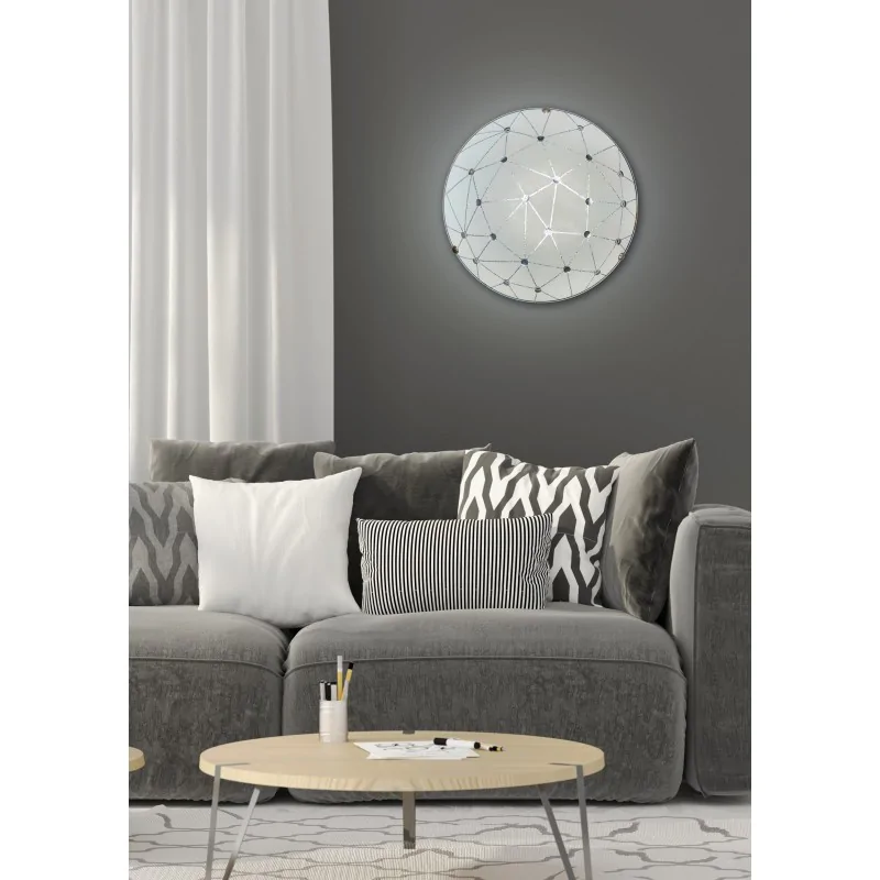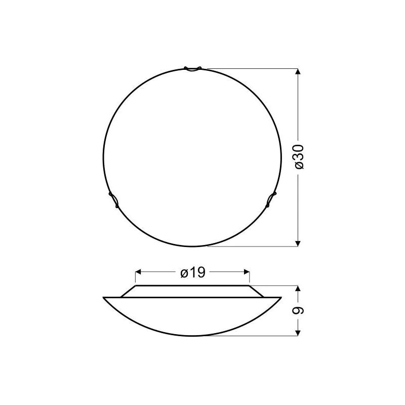 Materiał wykonania: podstawa stalowa, klosz szklany. Kolor podstawy: biały. Wysokość: 9. Szerokość: 30. Głębokość: 30. Wymiary (wys. x szer. x gł.): 9x30x30. Waga netto: 0,72. Barwa światła: neutralna.