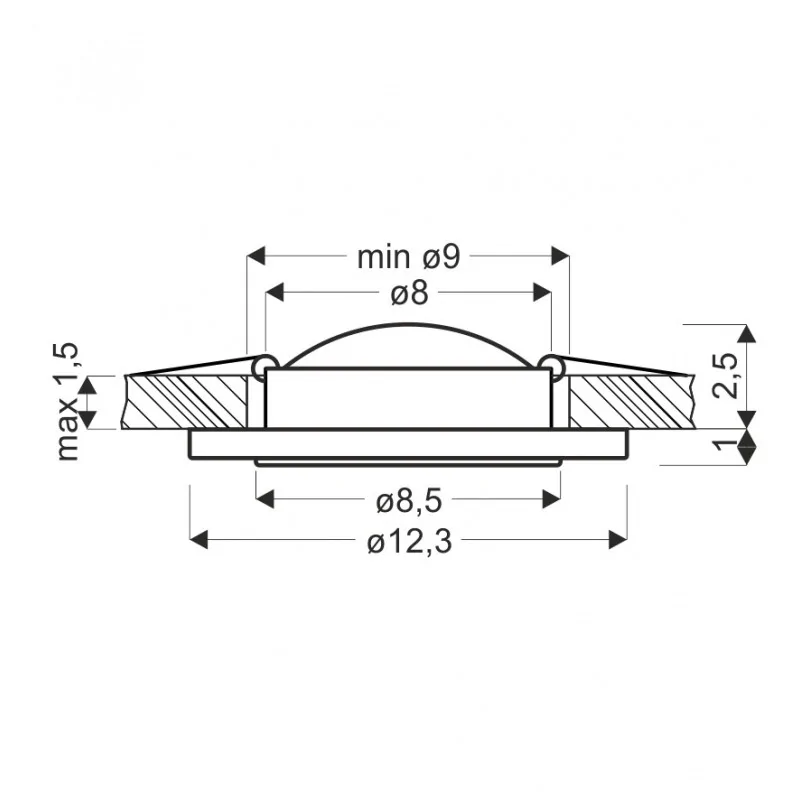 Materiał wykonania: szkło, podstawa ze stopu aluminium. Wysokość: 1. Szerokość: 12,3. Głębokość: 12,3. Wymiary (wys. x szer. x gł.): 1x12,3x12,3. Średnica: 9. Waga netto: 0,23. Barwa światła: zimna.