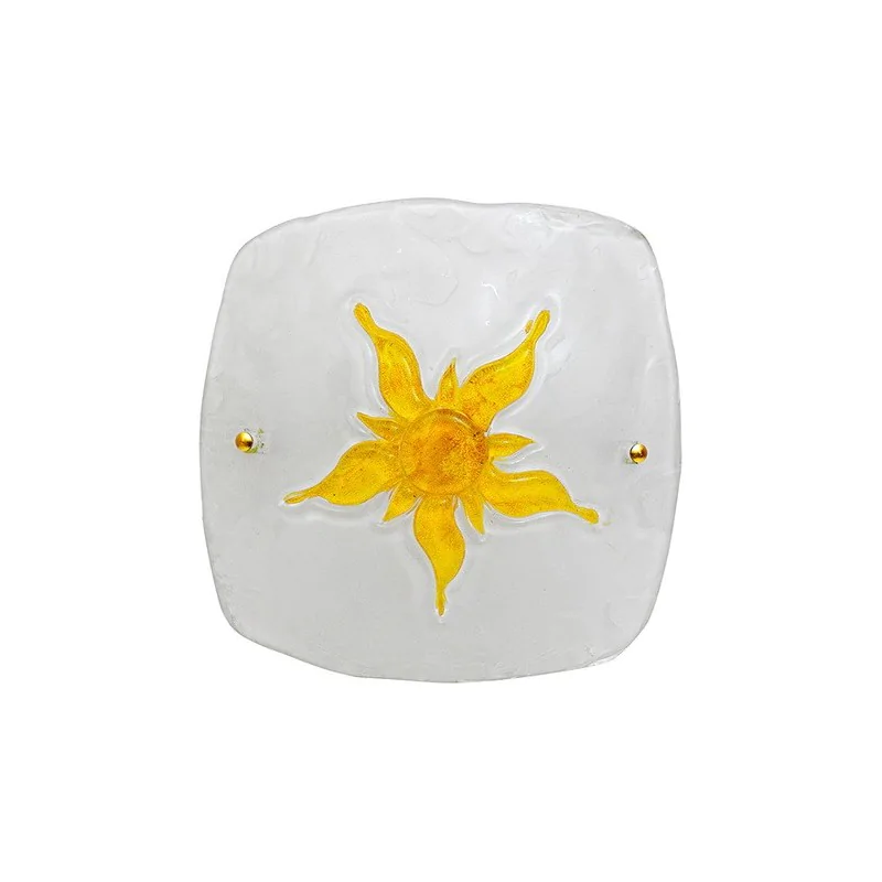 Materiał wykonania: podstawa stalowa, klosz szklany. Kolor podstawy: biały + żółty. Wysokość: 11. Szerokość: 35. Głębokość: 35. Wymiary (wys. x szer. x gł.): 11x35x35. Waga netto: 2,35. Rodzaj trzonka: E27.