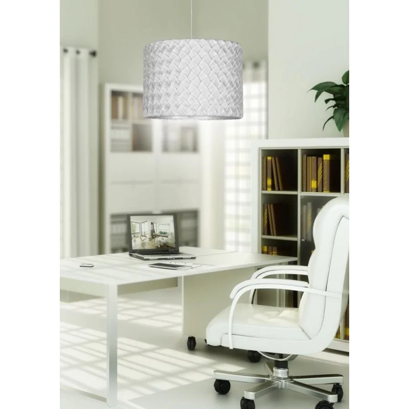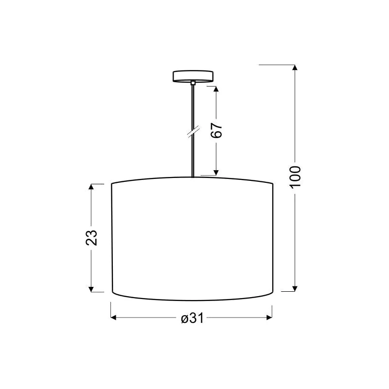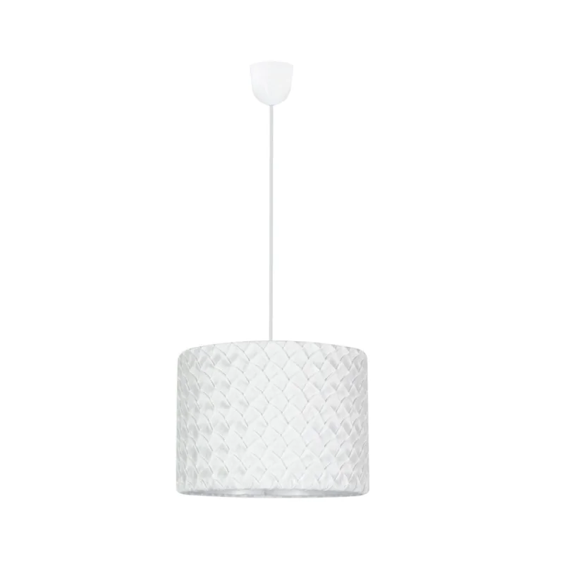 Materiał wykonania: zawiesie stalowe, abażur tkanina/PCV. Kolor podstawy: biały. Wysokość: 100. Szerokość: 31. Głębokość: 31. Wymiary (wys. x szer. x gł.): 100x31x31. Waga netto: 0,80. Rodzaj trzonka: E27.