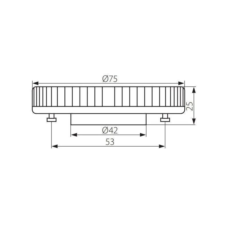 Wysokość: 2,5. Szerokość: 7,3. Głębokość: 7,3. Wymiary (wys. x szer. x gł.): 2,5x7,3x7,3. Waga netto: 0,07. Rodzaj trzonka: GX53.