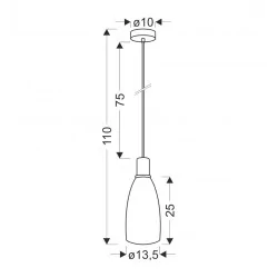 Materiał wykonania: zawiesie stalowe, klosz szklany. Kolor podstawy: szary. Wysokość: 110. Szerokość: 13,5. Głębokość: 13,5. Wymiary (wys. x szer. x gł.): 110x13,5x13,5. Waga netto: 0,97. Rodzaj trzonka: GU10.