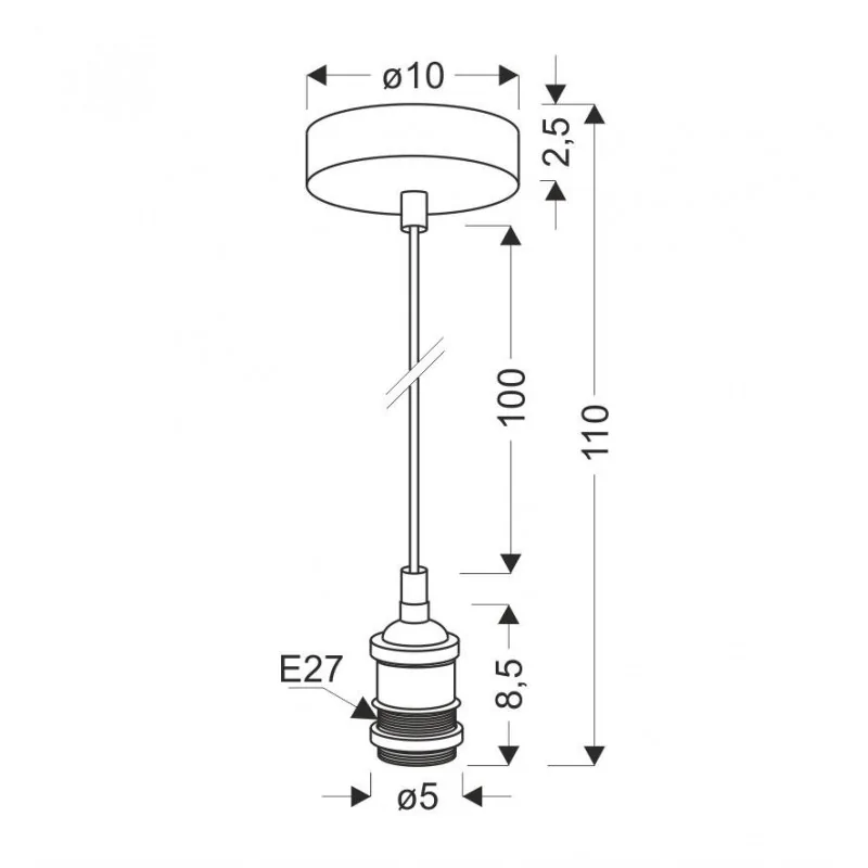 Materiał wykonania: stal, przewody elektryczne, oprawki. Kolor podstawy: czarny. Wysokość: 110. Szerokość: 10. Głębokość: 10. Wymiary (wys. x szer. x gł.): 110x10x10. Średnica: 10. Waga netto: 0,33. Rodzaj trzonka: E27.