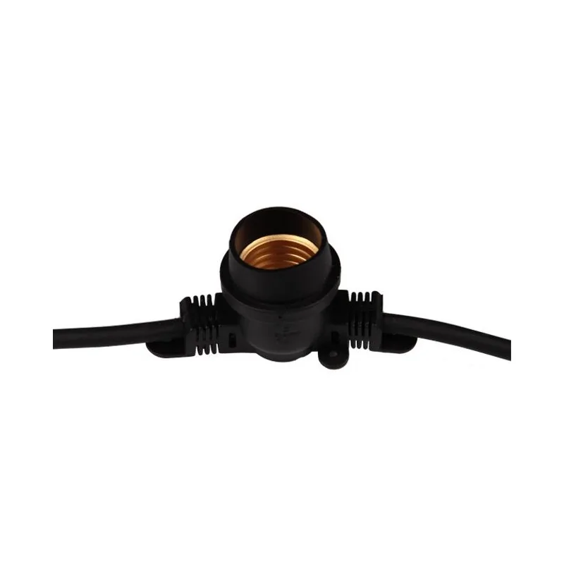 Girlanda LED marki LVT posiada podwyższony stopień ochronności IP44, więc odporna będzie na różne warunki pogodowe. Oprawki rozmieszczone są w odległości 50 cm od siebie. Oświetlenie, które dzięki wymiennym źródłom światła o gwincie E27 pozwoli, abyśmy dopasowali odpowiednią moc i barwę światła do naszych oczekiwań. Dzięki temu stworzymy magiczny i wyjątkowy klimat. Pamiętajmy, że żarówki nie są dołączone do zestawu. Zaletą girlandy LED jest to, że oświetli nam wybrane miejsce przez cały rok. Produkt objęty 2-letnią gwarancją.