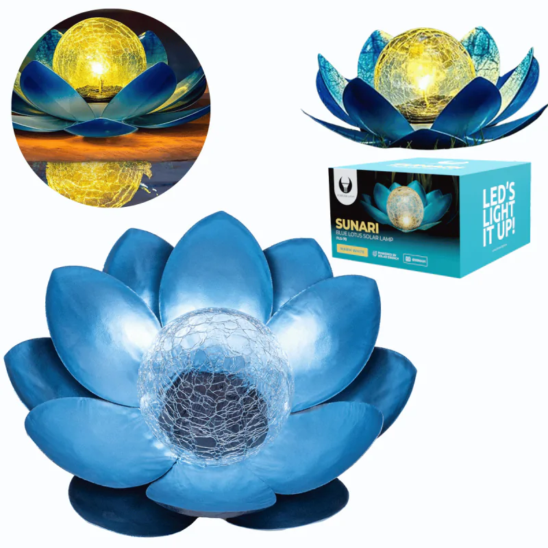 Lampa solarna LED kwiat lotosu niebieski z ciepłym światłem SUNARI ForeverLight