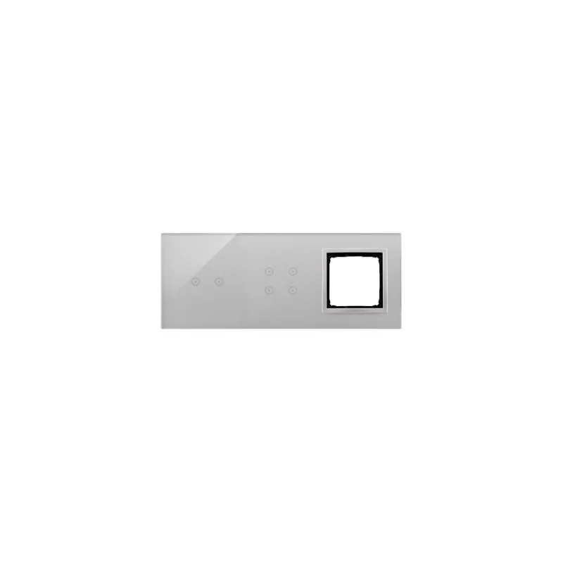 Panel dotykowy DSTR3240/71 serii Simon 54 Touch firmy Kontakt Simon wykonany jest ze szkła hartowanego. Panel dotykowy przeznaczony jest włączników podwójnych i żaluzjowych podwójnych oraz osprzętu serii Simon 54. Dotykowy panel jest w kolorze srebrnej mgły i posiada podświetlane niebieską diodą LED pola dotykowe. Panel dotykowy posiada wymiary takie jak: wysokość- 96 mm, szerokość- 934 mm, głębokość- 10 mm.