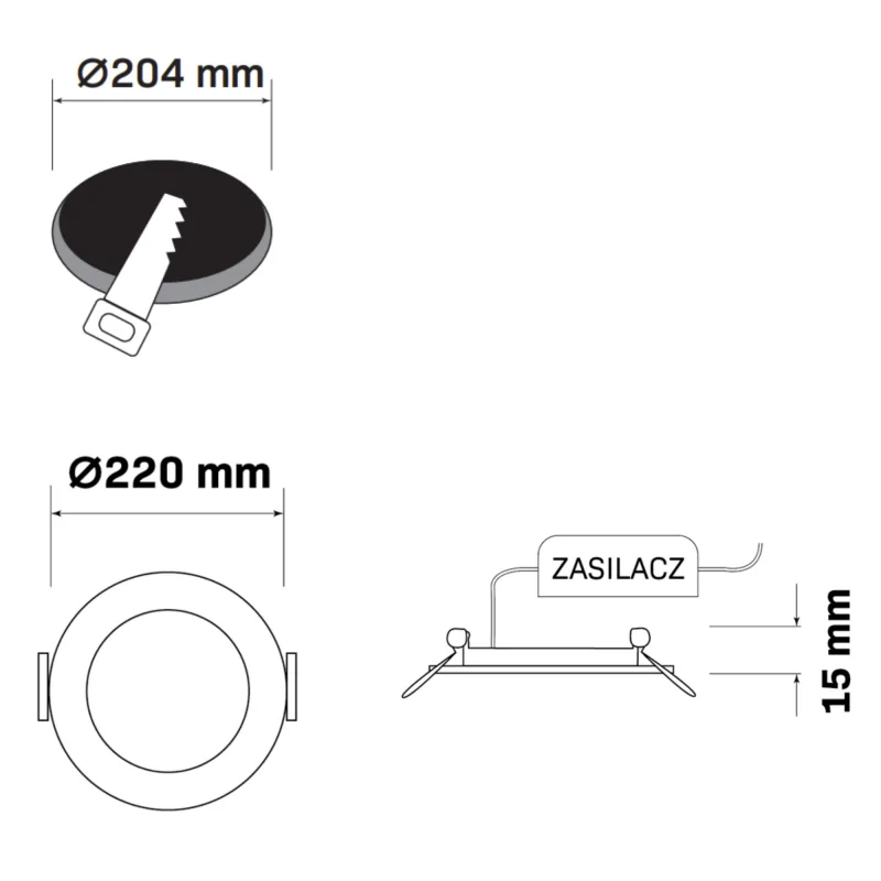 - Średnica otworu montażowego: 20,4cm