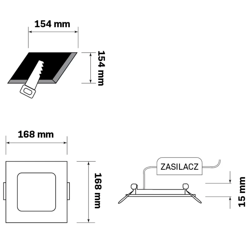 - Średnica otworu montażowego: 15,4/15,4cm