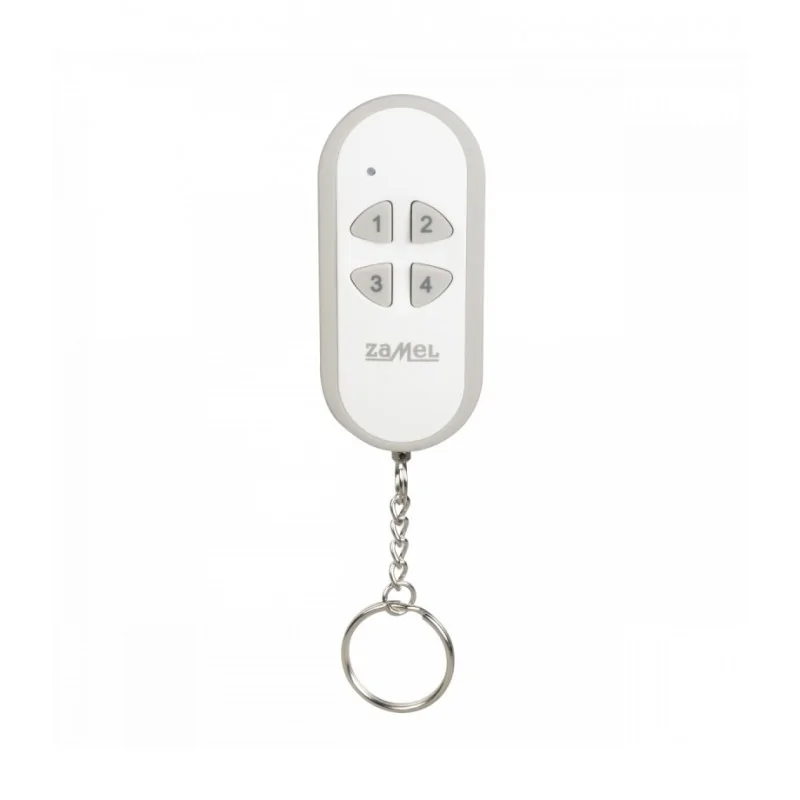Pilot 4-kanałowy marki ZAMEL pozwala na zdalne sterowanie odbiornikami systemu EXTA LIFE. Pilot pozwala na regulację jego jasności, sterowanie roletami, żaluzjami, markizami, a także bramami wjazdowymi oraz drzwiami garażowymi. Produkt wyposażony został w praktyczny łańcuszek, który umożliwia przywieszenie pilota np. do kluczy.