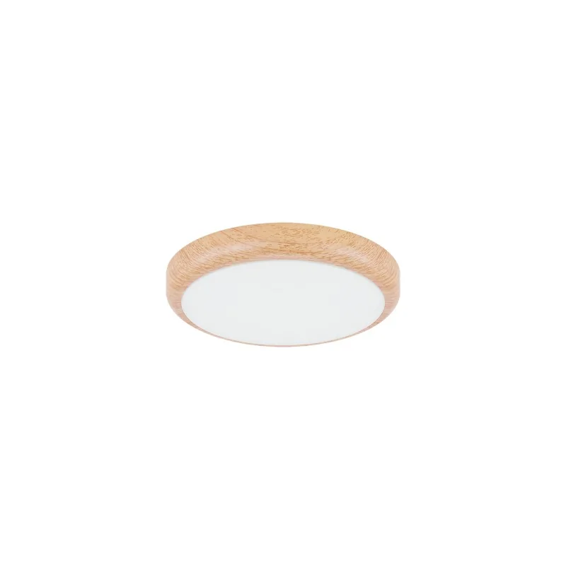 Okrągła plafoniera LED NASTIA to doskonałe rozwiązanie oświetleniowe oferujące różne zastosowania. Wybrany model posiada obudowę z tworzywa sztucznego imitującego drewno sosnowe. Plafon LED posiada możliwość samodzielnego ustawienia jednej z trzech temperatur barwowych: ciepłobiałej, neutralnej białej lub zimnobiałej, dzięki czemu sprawdzi się zarówno w pomieszczeniach użytkowych, publicznych czy korytarzach lub sypialniach. Model działa z mocą 14W na poziomie max 1450lm strumienia świetlnego. Równie ważna jest inna cecha nowych plafonier, a mianowicie możliwość zamontowania ich w sposób podtynkowy (przy użyciu sprężyn, w otworze wywierconym np. w płycie gipsowo-kartonowej) lub natynkowy (na suficie, przy użyciu kołków montażowych). Plafon sufitowy NASTIA dostępny jest w kolorze białym oraz we wzorze imitującym drewno sosnowe w mocach 14W lub 18W. Produkt posiada 2 letnią gwarancję. Średnica oprawy wynosi 17cm, jej wysokość to 2,8 cm, a średnica otworu montażowego w przypadku montażu podtynkowego to 11 cm.