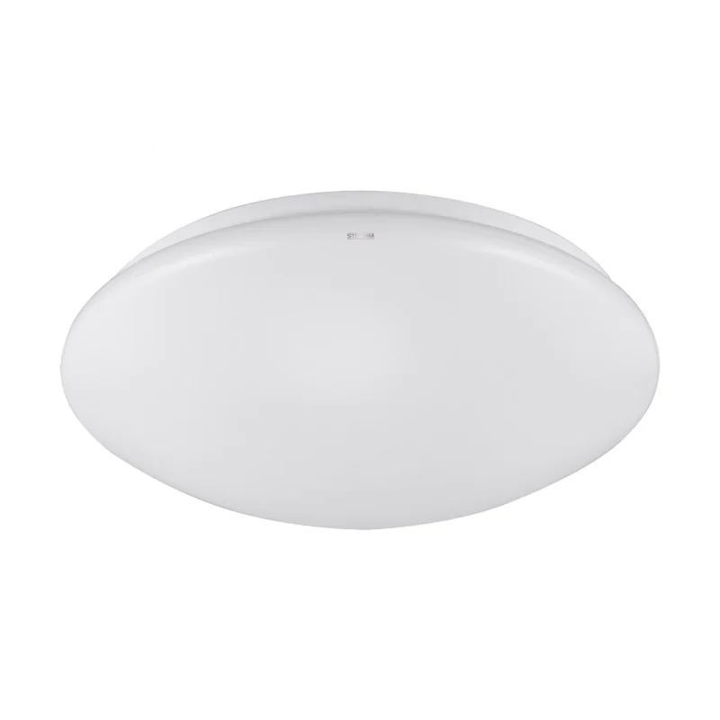 Lampa sufitowa STIG marki IDEUS, to klasyczna forma oświetleniowa o średnicy 33 cm i wysokości 10cm. Plafon STIG w kolorze białym wykonany jest ze stali ( podstawa) i tworzywa sztucznego ( klosz). Produkt objęty gwarancją producenta. Okrągła plafoniera przeznaczona jest na wymienne źródło światła - 2 żarówki led o gwincie E27 do maksymalnej mocy 13W każda - brak w zestawie. To rozwiązanie umożliwia użytkownikowi dobranie mocy czy barwy światła do indywidualnych potrzeb i upodobań. W ofercie również występuje plafon STIG na 2 żarówki E27 bez czujnika ruchu. Stopień IP plafonu STIG to IP20- produkt przeznaczony do użytku wenątrz pomieszczeń. Plafon dodatkowo został wyposażony w mikrofalowy czujnik ruchu pozwalający na ustawienie takich parametrów jak zasięg wykrywania ruchu (<1,7m; 2,5m; 3,3m; 4,0m), czas świecenia po wykryciu ruchu (<5s; 30s; 1min; 3min; 5min; 10min; 20min; 30min) oraz poziom natężenia oświetlenia otoczenia, przy którym urządzenie będzie pracowało (<10 lux; <20 lux; <75 lux; <200 lux; OFF).