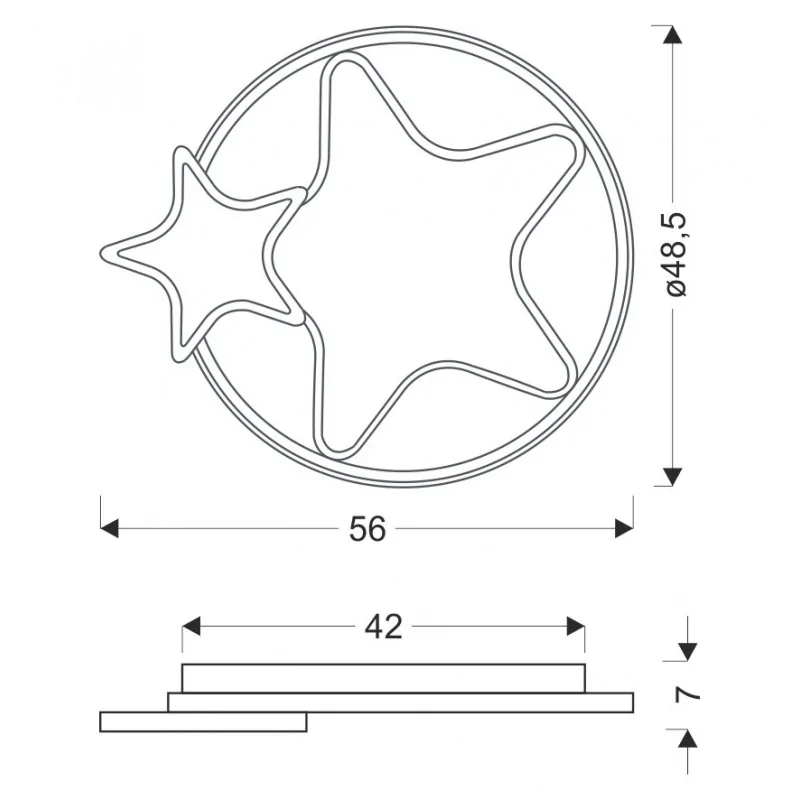 Materiał wykonania: podstawa stalowa, klosz akrylowy. Kolor podstawy: brązowy. Wysokość: 7. Szerokość: 56. Głębokość: 48,5. Wymiary (wys. x szer. x gł.): 7x56x48,5. Waga netto: 1,01. Barwa światła: zmienna.