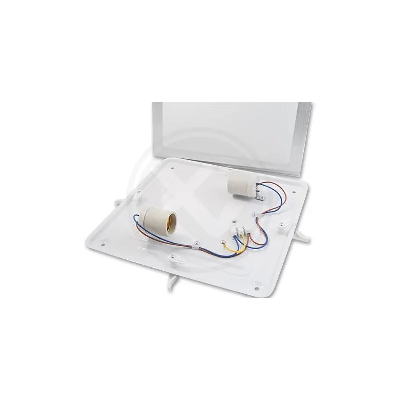 Plafon kwadrat w srebrnej obudowie na 2 żarówki E27