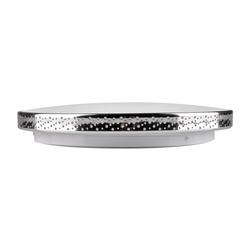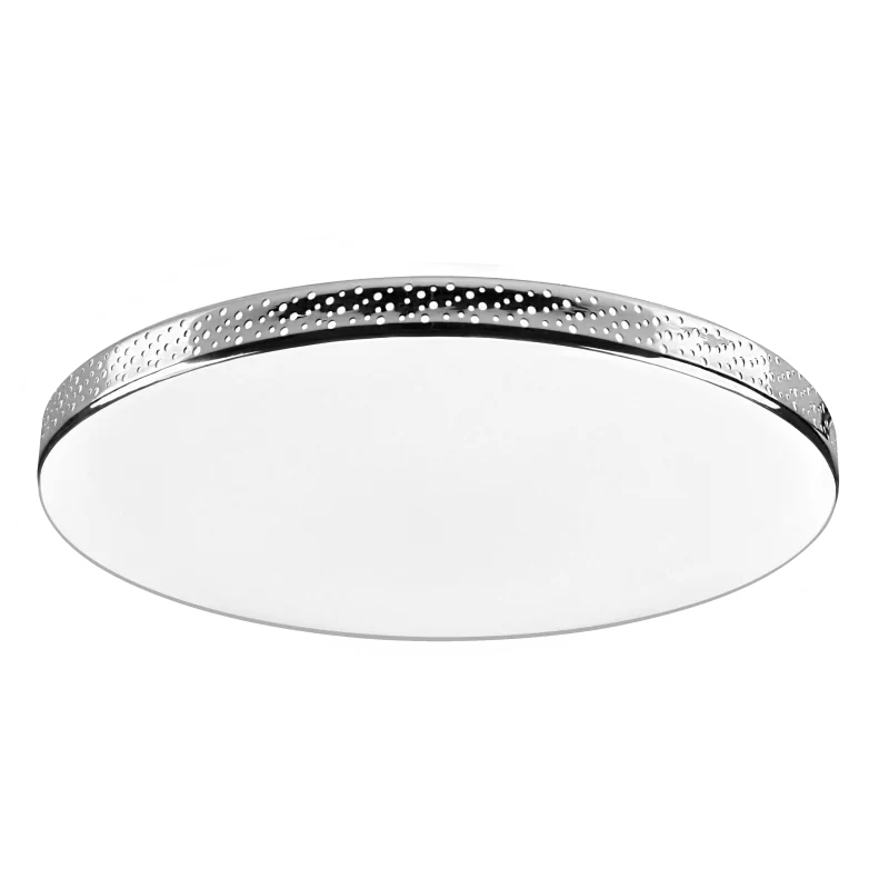Plafon MOON led z chromowaną ażurową obwódką to oświetlenie sufitowe idealne do modnych wnętrz. Ze względu na podwyższoną odporność na wilgoć - IP44 produkt sprawdzi się jako oświetlenie łazienkowe. Ciekawa obudowa wkomponuje się w każde wnętrze i doda mu ciekawego charakteru dając nietuzinkowy efekt świecenia. Produkt świeci przyjemnym dla oczu, neutralnym białym światłem o temperaturze barwowej 4000K i strumieniu świetlnym równym 1850 lumenów. Średnica plafonu to 35,5 cm, a jego moc to 18W. Produkt objęty 2 letnią gwarancją. Plafoniera MOON występuje również w wersji z czarną obudową.