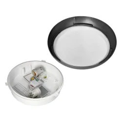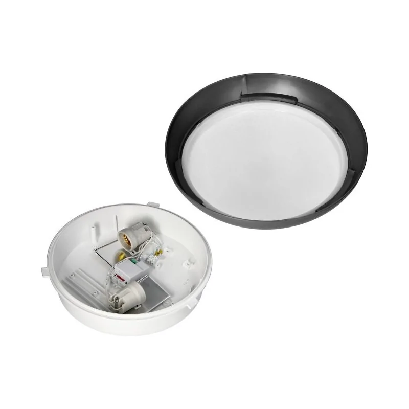 Klasyczny okrągły plafon z tworzywa sztucznego w czarnej obudowie to oświetlenie wyposażone w podwyższony stopień odporności IP44 i odporne na uderzenia (IK10). Idealnie spisze się w miejscach bardziej wymagających np. w piwnicy, na klatkach schodowych, w pomieszczeniach gospodarczych czy na elewacjach. Plafon przystosowany jest do dwóch żarówek z tradycyjnym gwintem E27, o maksymalnej mocy 40W- brak w zestawie. Zaleca się stosowanie żarówek o całkowicie przezroczystej bańce. Oprawa dodatkowo posiada wbudowany mikrofalowy czujnik ruchu i czujnik zmierzchowy, więc włącza oświetlenie tylko wtedy, gdy jest potrzebne. Model KOKO dostępny w różnych kolorach i wariantach mocy.
