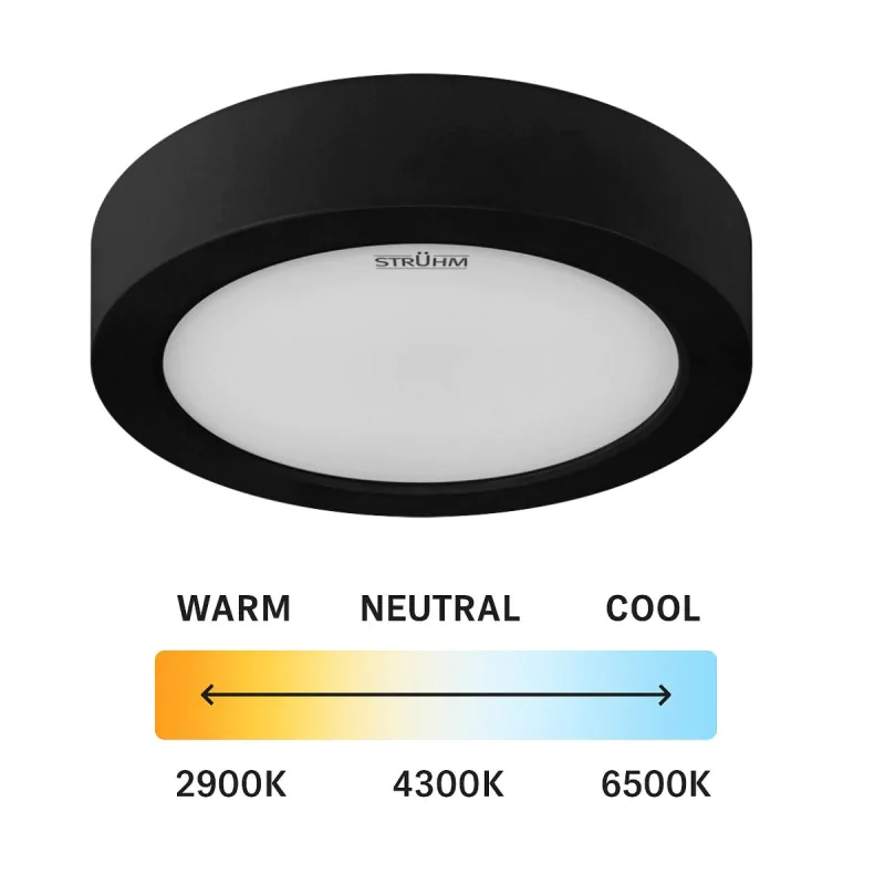 Trzy tryby barwy światła w jednej lampie – możliwość wyboru ciepłej, neutralnej lub zimnej bieli (2900K / 4300K / 6500K) zapewnia dopasowanie oświetlenia do nastroju i potrzeb pomieszczenia