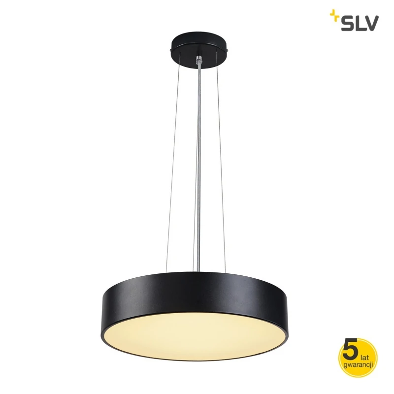 Okrągłe oświetlenie sufitowe pełniące rolę plafonu oraz lampy wiszącej w wyniku dokupienia zestawu zawiesi od marki SPOTLINE. Prezentowana oprawa o średnicy 38 cm wykonana została z aluminium w czarnej kolorystyce. Lampa posiada wbudowane źródło światła LED świecące ciepłą, białą barwą 3000K z mocą strumienia świetlnego 2000 lumenów. Ze względu na sposób montażu stanowi idealne oświetlenie do salonu, biura czy na korytarz. Prezentowana lampa sufitowa charakteryzuje się bardzo długą żywotnością. Czas pracy oświetlenia sięga 25000 godzin.