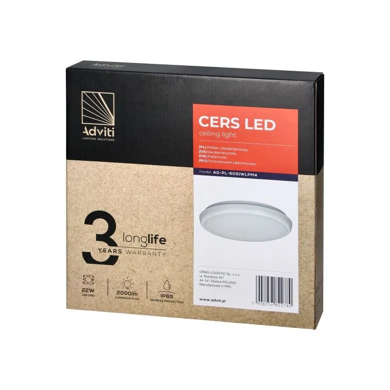 Hermetyczny plafon LED 22W biały 2000lm IP65 4000K CERS AD-PL-6091WLPM4 ORNO