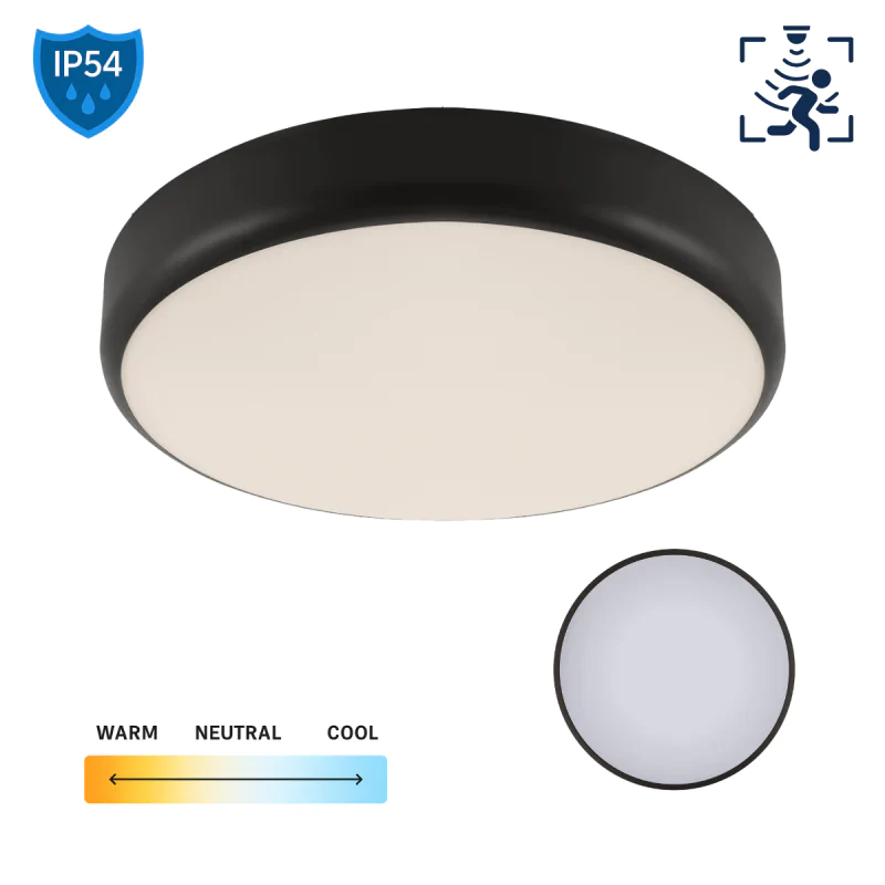 Lampa LED hermetyczna Plafon czarny z czujnikiem ruchu GOLIAT IDEUS