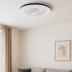 Uniwersalny, nowoczesny design sprawia, że plafon idealnie komponuje się z różnymi stylami wnętrz – od minimalistycznych po klasyczne. Kompaktowa konstrukcja doskonale pasuje również do pomieszczeń o ograniczonej przestrzeni, zapewniając optymalne oświetlenie i przyjemne chłodzenie w jednym, estetycznym urządzeniu.