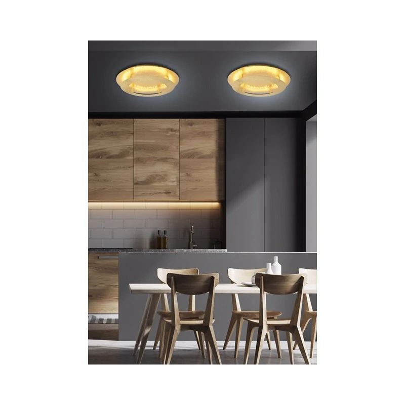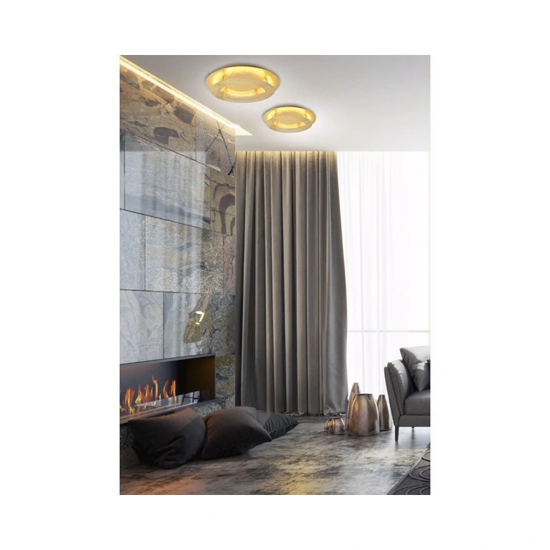 Lampa sufitowa złota emitująca ciepłą barwą światła