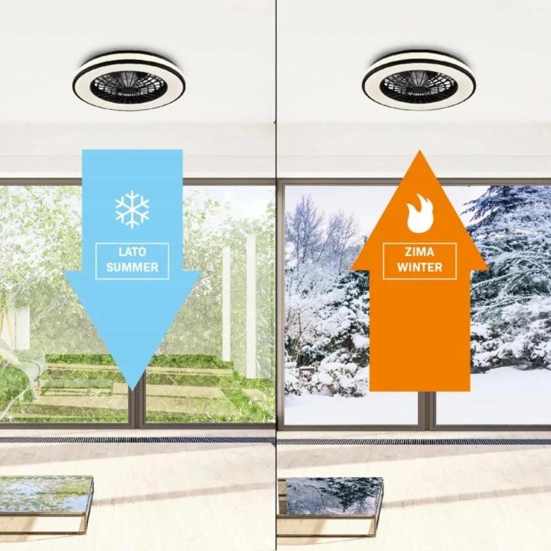 Okrągły plafon led o maksymalnej mocy 48W z dodatkową funkcją wentylatora