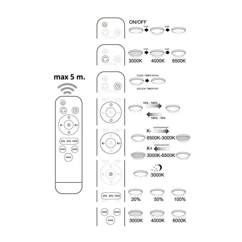 - barwa światła produktu: ustawiana pilotem od 3000K do 6500K ciepła - neutralna - zimna biała